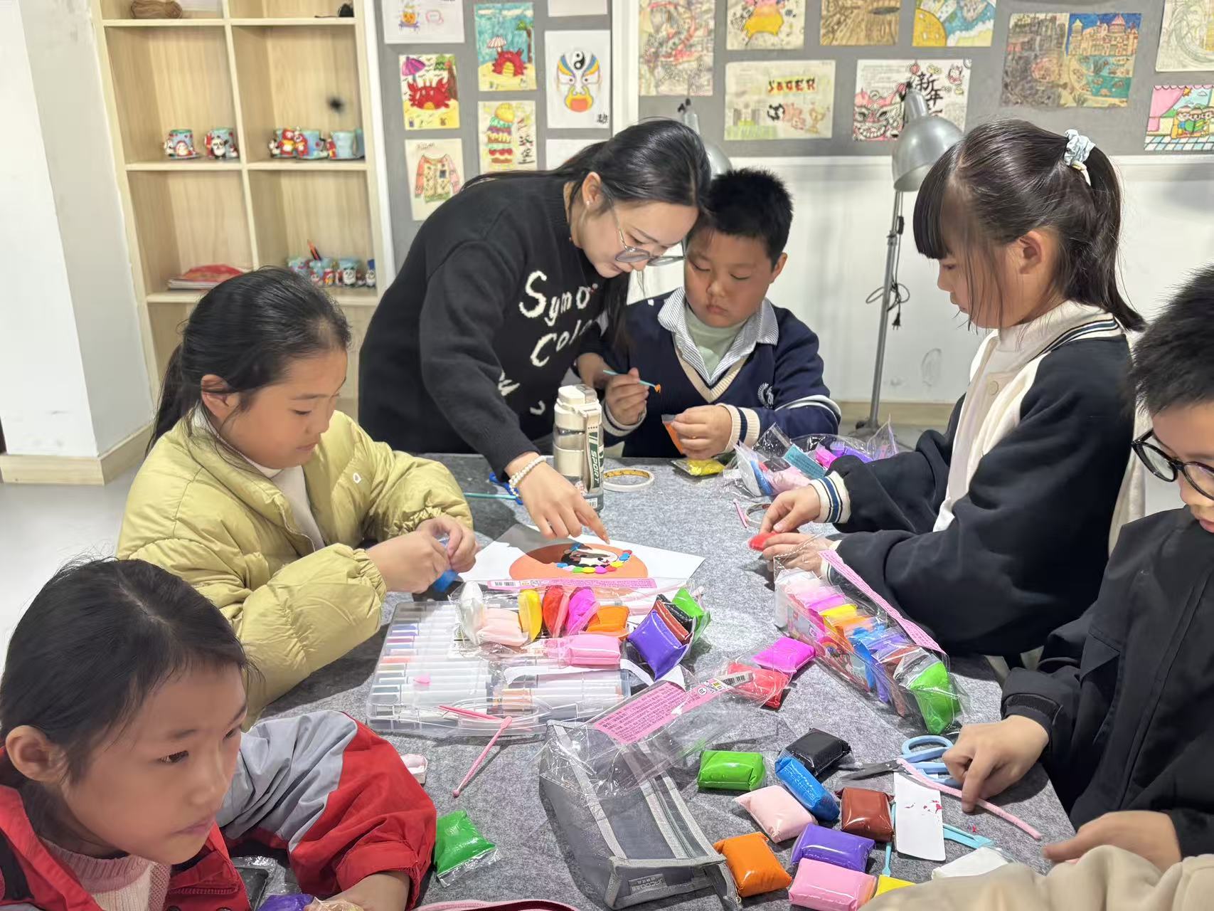 此次活动的“主角”——黄梅戏盔帽,均由美术学(师范)专业的学生在非遗传承人的指导下制作完成。从秀丽雅致的女驸马盔、珠光璀璨的公主凤盔,到威严庄重的九龙盔,每一件作品都还原了传统盔帽的工艺精髓。为适配中小学教学场景,师范生们更对盔帽制作技艺进行了创新转化:将复杂的传统材料替换为安全易操作的粘土、扭扭棒、彩纸等,设计出覆盖小学低、中、高三个学段的课程包——低年级侧重“画盔帽”,用线条色彩勾勒纹样;中年级开展“拼贴半立体盔帽”,培养空间造型能力;高年级尝试“简易盔帽制作”,体验基础工艺流程,实现“非遗技艺”与“课堂教学”的无缝衔接。