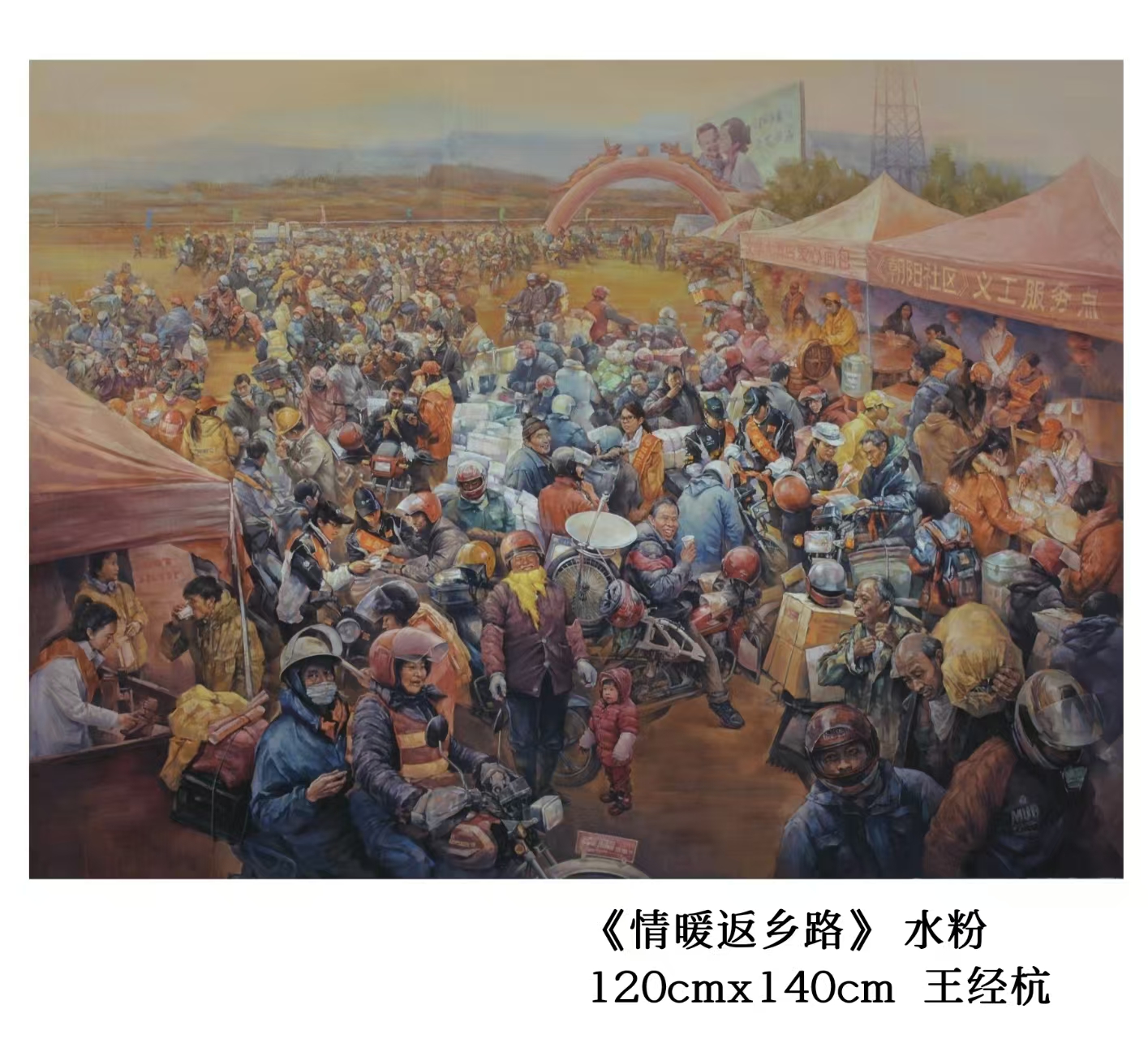 王经杭《情暖返乡路》水粉